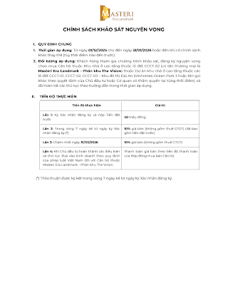 CHÍNH SÁCH BÁN HÀNG DÀNH CHO QUỸ CĂN HỘ VIP TẠI DỰ ÁN MASTERI ERA LANDMARK (01/01/2026 cho đến ngày 28/02/2026 hoặc đến khi có chính sách khác thay thế )