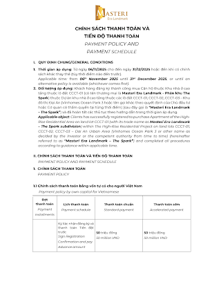 Chính sách bán hàng và tiến độ thanh toán(Từ ngày 06/11/2025 cho đến ngày 31/12/2025) CSBH Phân khu Spark