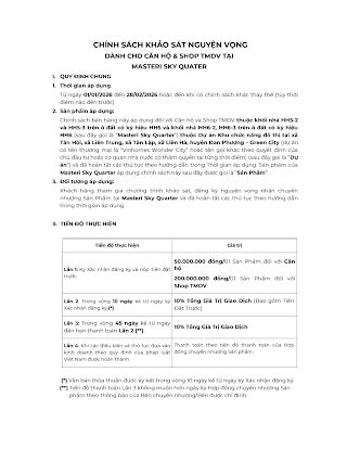 CHÍNH SÁCH KHẢO SÁT NGUYỆN VỌNG DÀNH CHO CĂN HỘ & SHOP TMDV TẠI MASTERI SKY QUATER (01/01/2026 đến 28/02/2026 hoặc đến khi có chính sách khác thay thế )\